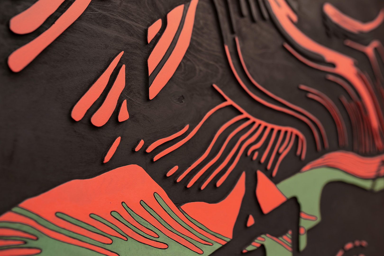 Acrylique, teinture sur bois sculpté / Acrylic, stain on sculpted wood