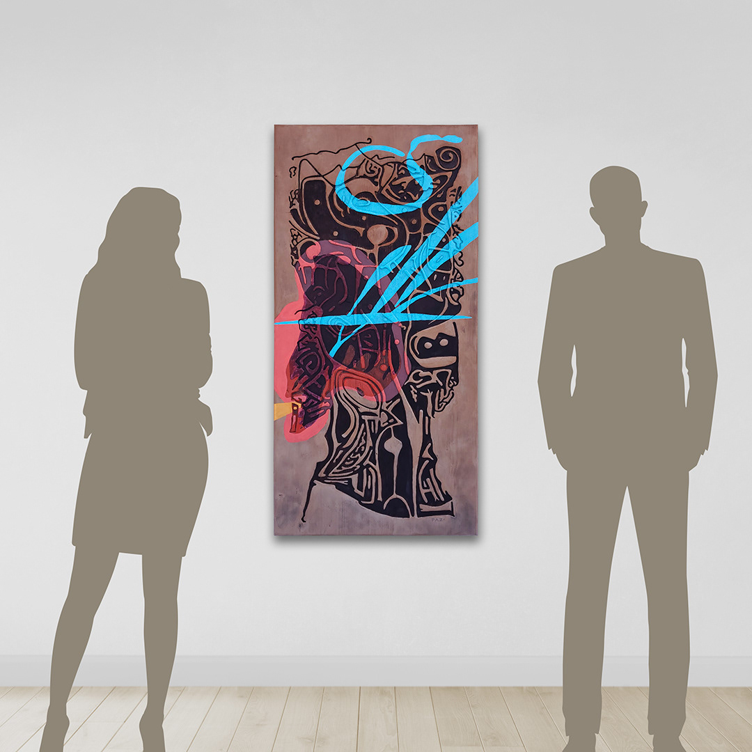 Acrylique, teinture sur bois sculpté et brûlé / Acrylic, stain on sculpted and burned wood