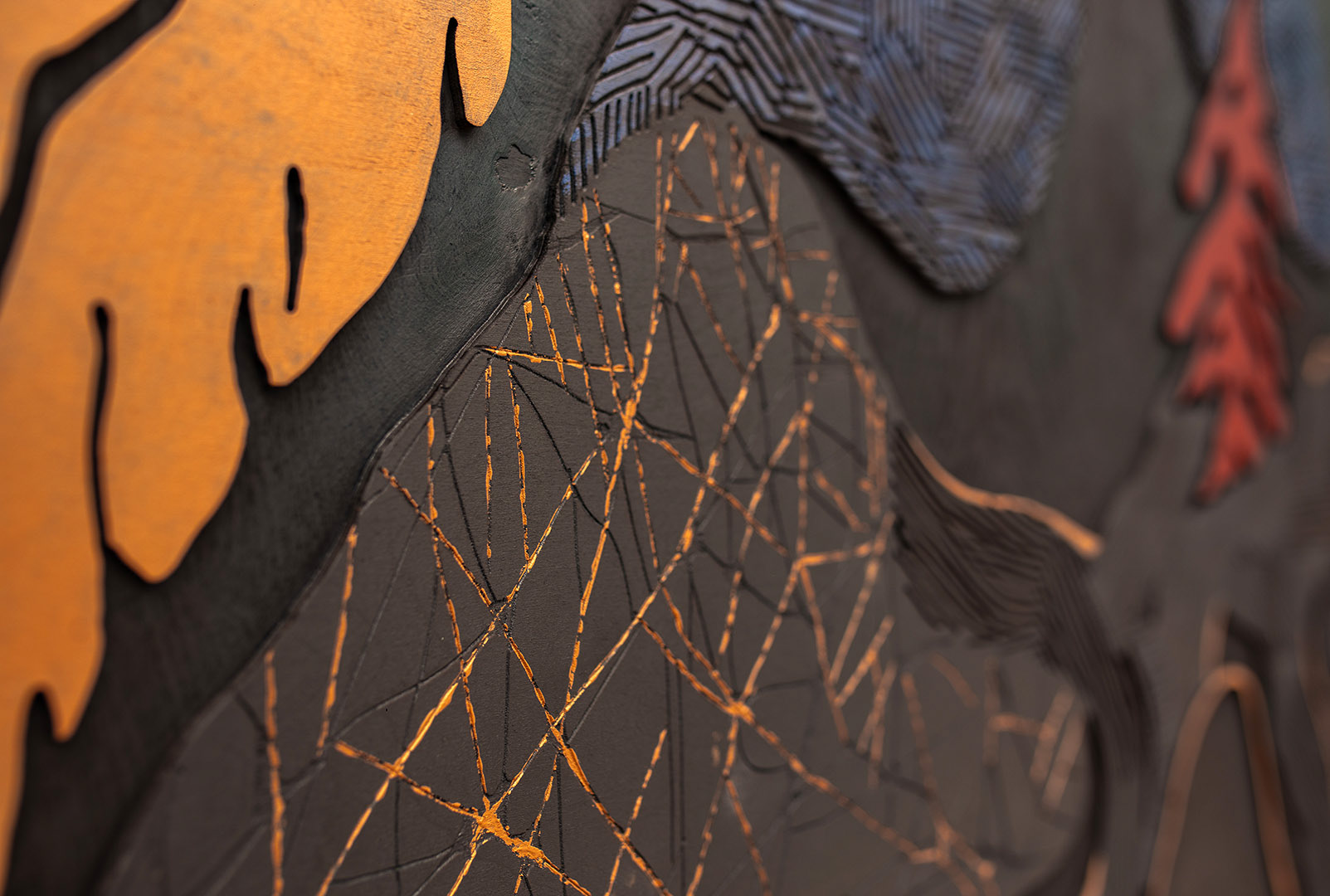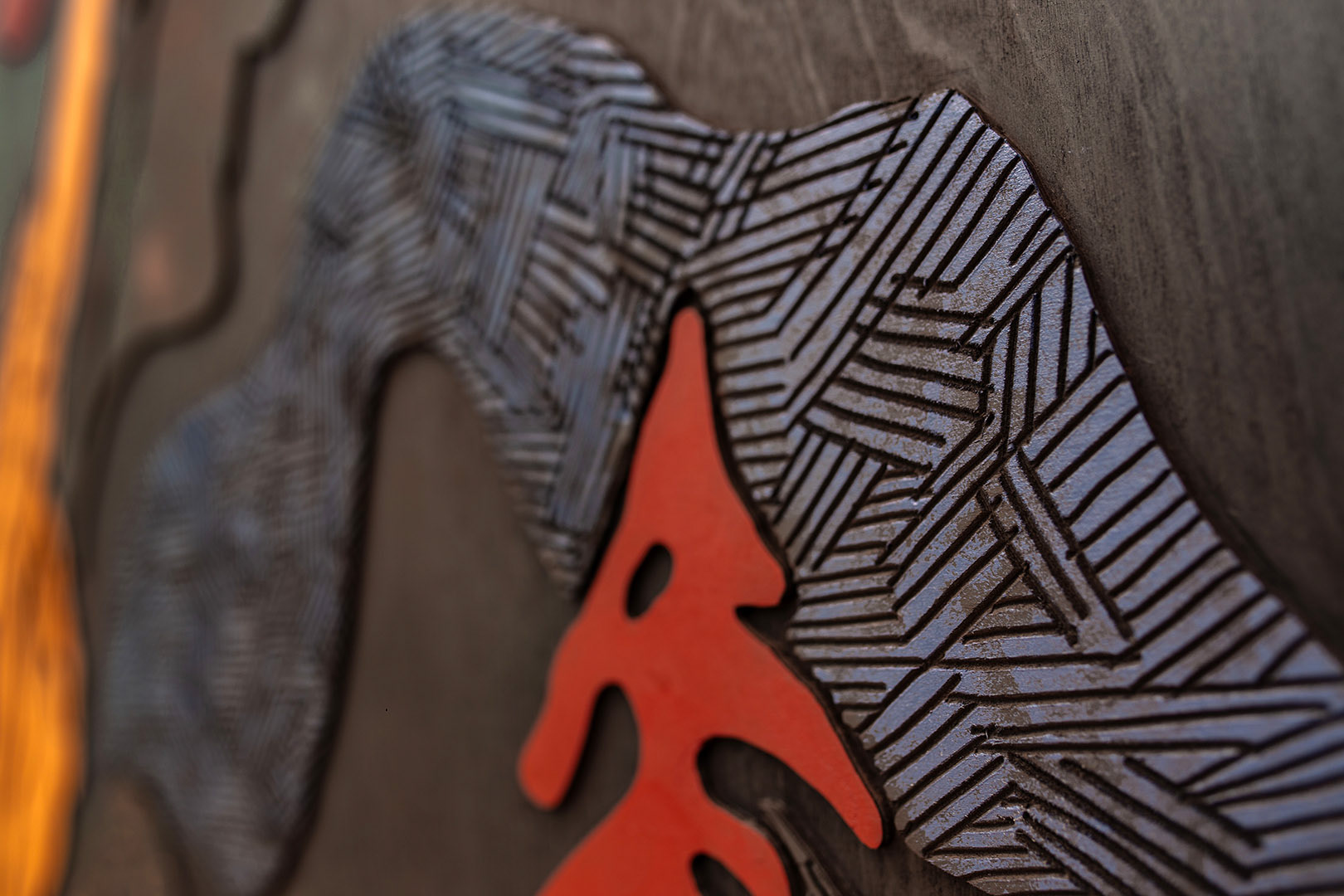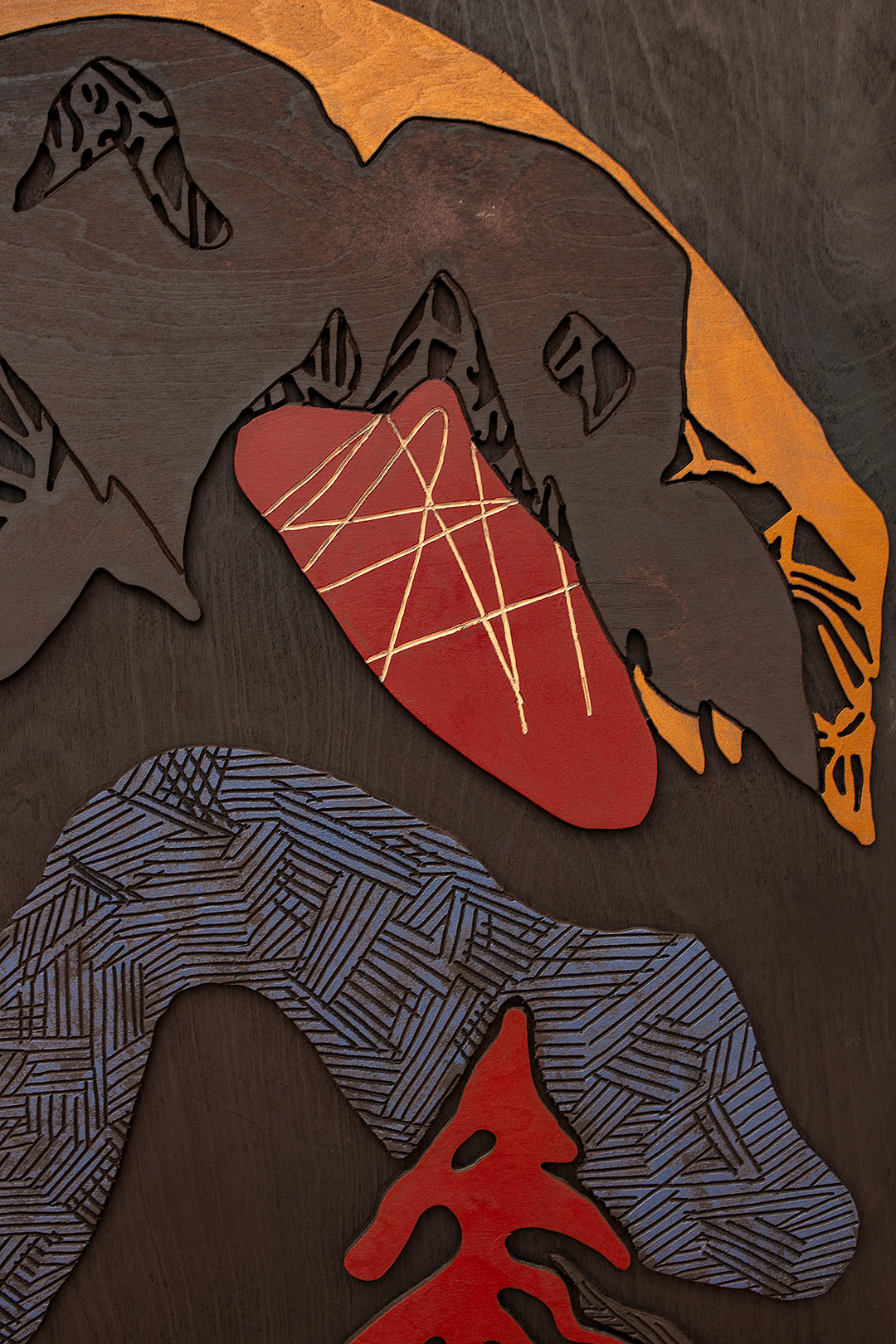 Acrylique, teinture sur bois sculpté / Acrylic, stain on sculpted wood