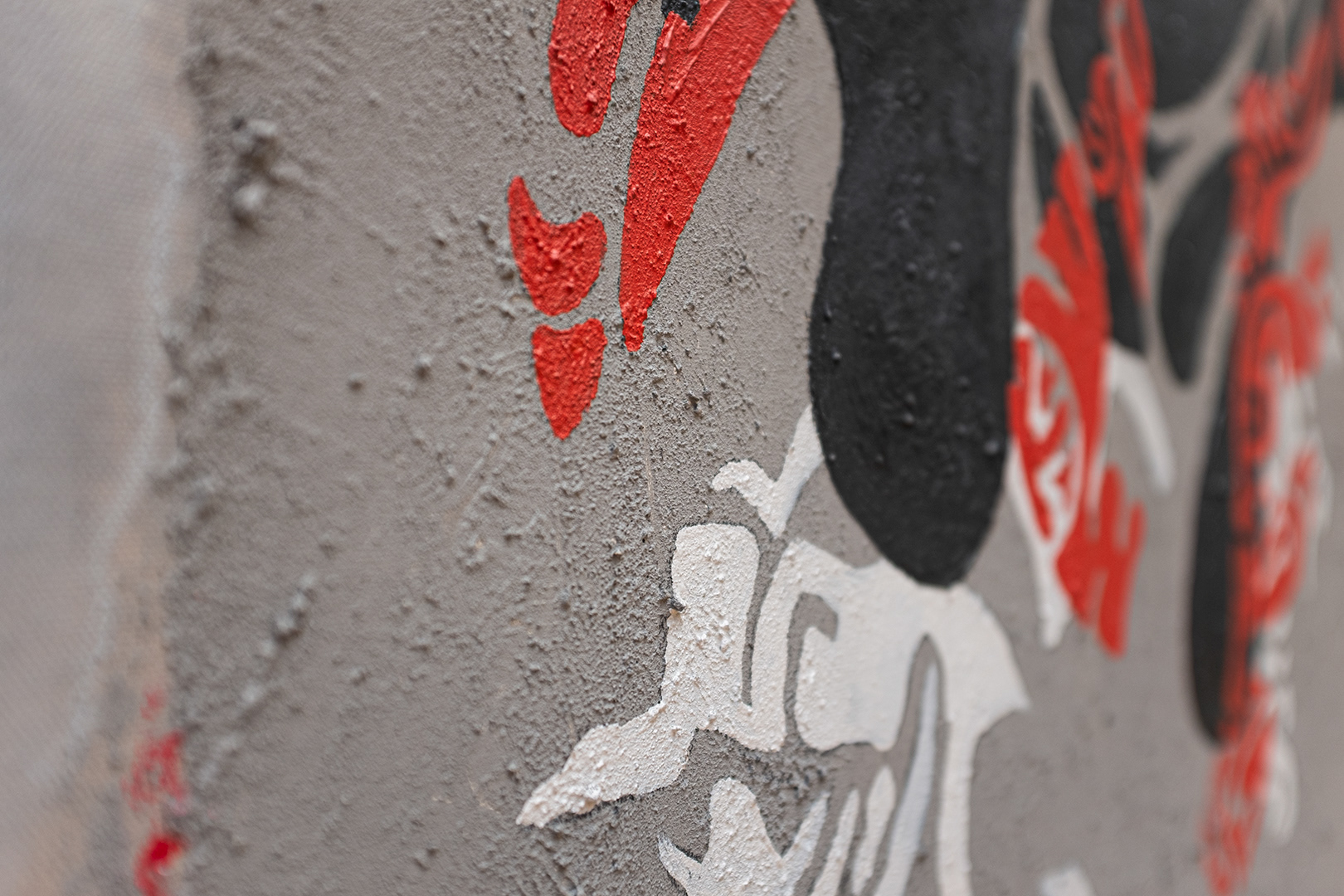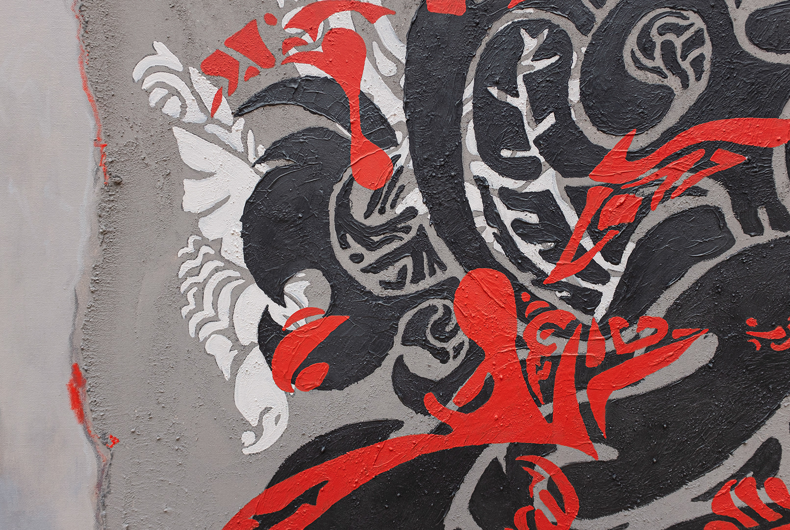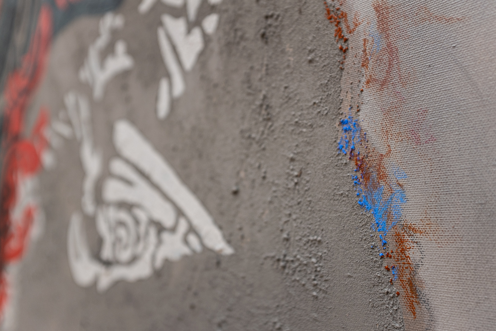 Acrylic, minerals, charcoal, oil pastels on canvas